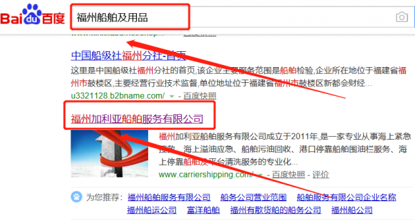福州加利亞船舶服務有限公司與本司簽約百度快照排名協(xié)議