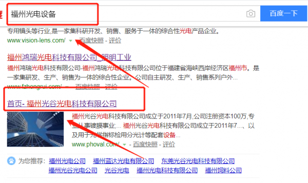 我們公司與福州光谷光電科技有限公司合作中,對這個公司所經營的光電設備這個行業提供了百度快照排名,與該公司的合作,更多的客戶讓我們公司為其提供百度快照排名,通過每一次合作,我們公司不斷完善自己,同時希望合作伙伴在經營的路上越來越好。