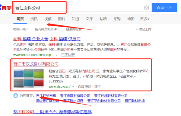 晉江市*龍鞋材有限公司選用我司企業面料的網站優化產品,其SEO關鍵詞有面料的。按天計費,最快7天上詞,不到首頁不扣費。關鍵詞質量保證,白帽SEO符合百度算法,360、搜狗、移動端等排名效果免費贈送。晉江市*龍鞋材有限公司成立于2002年,是經晉江市市場監督管理局審核的有資質的公司,其統一社會信用代碼:91350582**3633358J。公司地址:福建省晉江市陳埭四境工業區。