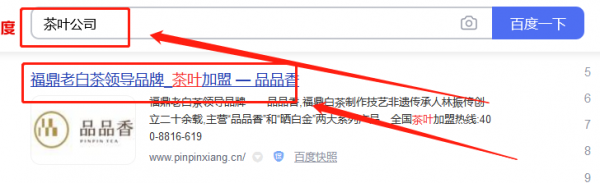 福建品品香茶業有限公司百度排名快照案例欣賞