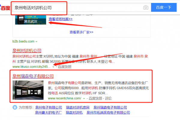 我們公司與泉州瑞森電子有限公司合作中,對這個公司所經營的電話對講機這個行業提供了關鍵詞搜索排名,與該公司的合作,更多的客戶讓我們公司為其提供關鍵詞搜索排名,通過每一次合作,我們公司不斷完善自己,同時希望合作伙伴在經營的路上越來越好。