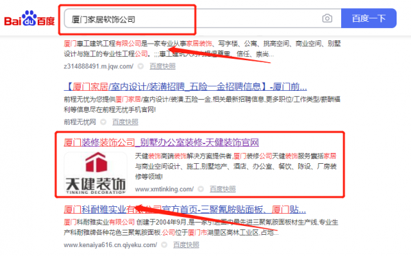 廈門天*建筑裝飾工程有限公司關鍵詞推廣網絡營銷優化公司