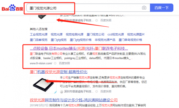 我們公司與廈門*連電子科技有限公司合作中,對這個公司所經營的視覺光源這個行業提供了SEO優化,與該公司的合作,更多的客戶讓我們公司為其提供搜索引擎優化推廣,通過每一次合作,我們公司不斷完善自己,同時希望合作伙伴在經營的路上越來越好。