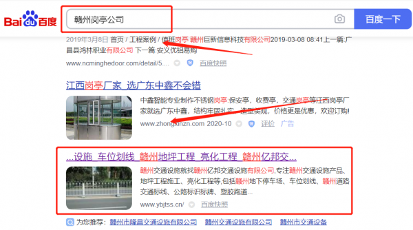 贛州市*邦交通設施有限公司百度排名到首頁按天扣費