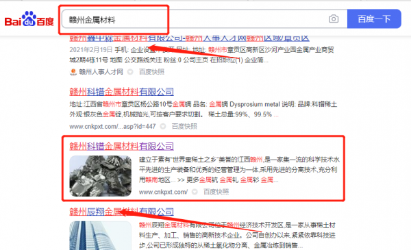 贛州*鐠金屬材料有限公司網絡營銷排名案例欣賞