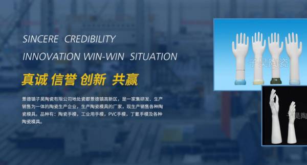 景德鎮子*陶瓷有限公司地處瓷都景德鎮高新區,是一家集研發、生產、銷售為一體的陶瓷生產企業,生產陶瓷模具的廠家,現生產銷售各種陶瓷模具。品種有:陶瓷手模,工業用手模,PVC手模,丁氰手模及各種陶瓷模具。