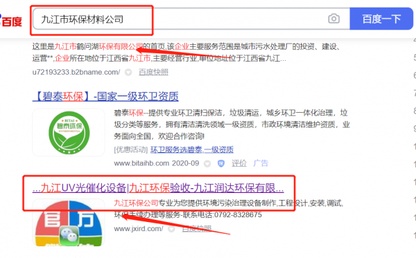九江*達(dá)環(huán)保有限公司關(guān)鍵詞排名到首頁按天扣費(fèi)