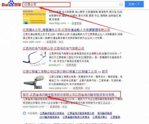 江西省海濟(jì)融資租賃股份有限公司同我公司簽署百度快照排名事宜
