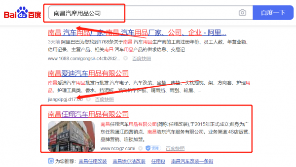 南昌任*汽車用品有限公司萬詞霸屏排名效果展示
