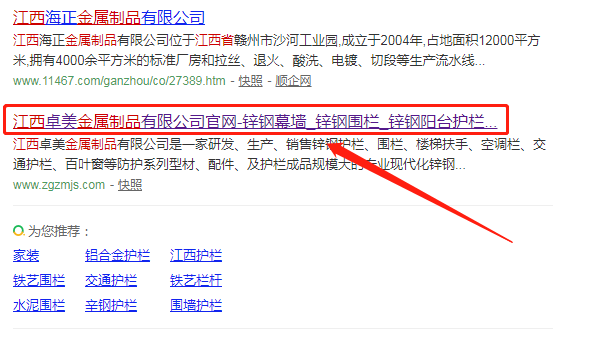 我們公司與江西卓美金屬制品有限公司合作中,對這個公司所經營的金屬制品這個行業提供了快速排名,與改公司的合作,更多的客戶讓我們公司為其提供快速排名,通過每一次合作,我們公司不斷完善自己,同時希望合作伙伴在經營的路上越來越好。