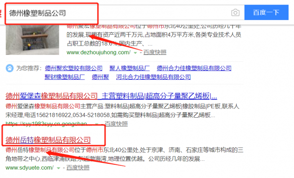 德州岳特橡塑制品有限公司跟本公司簽訂快速排名合同