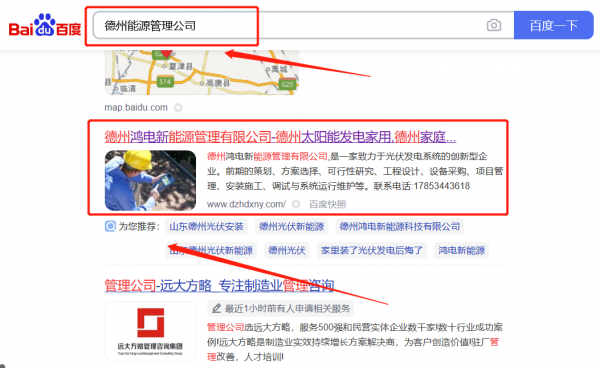 德州鴻*新能源管理有限公司優化排名快上詞效果展示