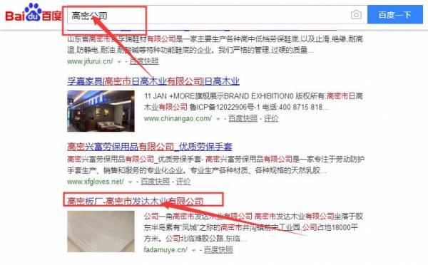 高密市發(fā)達木業(yè)有限公司和我公司簽訂百度快照排名項目