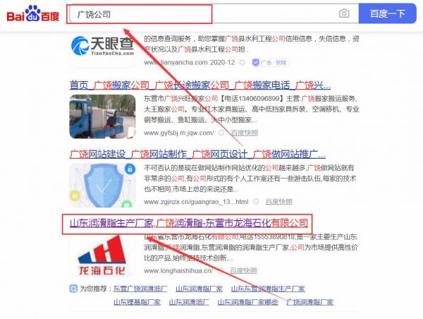 山東省東營市龍*石化有限公司網站優化最快上詞效果展示