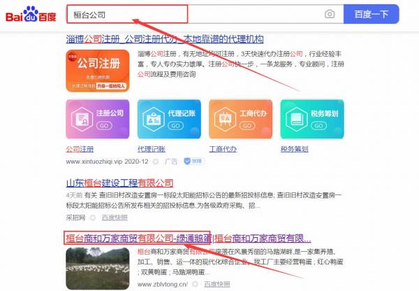 桓臺商*萬家商貿有限公司百度關鍵詞排名效果展示