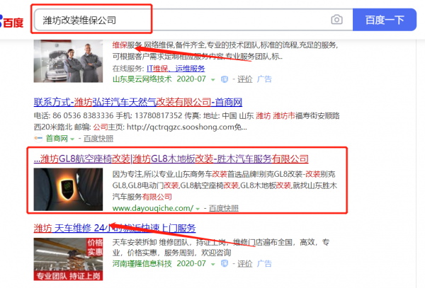 我們公司與山東*木汽車服務有限公司合作中,對這個公司所經營的改裝維保這個行業提供了搜索引擎優化推廣,與該公司的合作,更多的客戶讓我們公司為其提供搜索引擎優化推廣,通過每一次合作,我們公司不斷完善自己,同時希望合作伙伴在經營的路上越來越好。