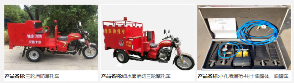 濟寧*泰消防設備有限公司是生產摩托消防車的企業,有二輪消防摩托車、三輪消防摩托車、四輪消防摩托車,可配備消防泵、細水霧滅火裝置。手抬機動消防泵可手動、電動,有13馬力、15馬力手抬機動泵等產品。公司技術力量雄厚、設備先進、檢測設施齊全,年生產能力數千臺銷售電話:本公司生產的所有產品均已經國家消防裝備質量監督檢測中心檢測,各項指標均符合標準要求,已申報國家產品。