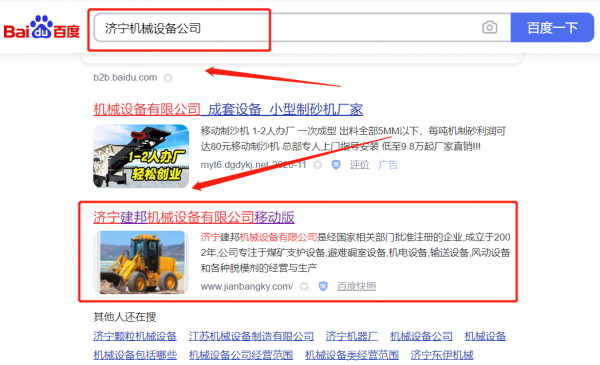 濟(jì)寧建*機(jī)械設(shè)備有限公司關(guān)鍵詞排名排名效果展示