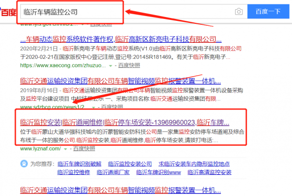 我們公司與臨沂龍?zhí)┲悄茈娮佑邢薰竞献髦校瑢?duì)這個(gè)公司所經(jīng)營的車輛監(jiān)控這個(gè)行業(yè)提供了百度快照排名,與該公司的合作,更多的客戶讓我們公司為其提供百度快照排名,通過每一次合作,我們公司不斷完善自己,同時(shí)希望合作伙伴在經(jīng)營的路上越來越好。