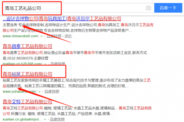 我們公司與青島裕昊工藝品有限公司合作中,對這個公司所經營的工藝禮品這個行業(yè)提供了百度快照排名,與該公司的合作,更多的客戶讓我們公司為其提供百度快照排名,通過每一次合作,我們公司不斷完善自己,同時希望合作伙伴在經營的路上越來越好。