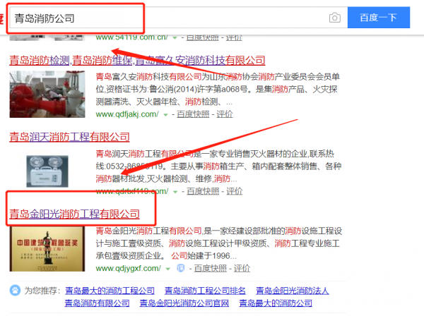 青島金陽光消防工程有限公司選用我司企業(yè)消防行業(yè)的網(wǎng)站優(yōu)化產(chǎn)品,其SEO關鍵詞有消防。SEO核心優(yōu)化技術(shù)能夠輕松做到優(yōu)化一個核心詞,匹配一批關鍵詞到首頁,為網(wǎng)站帶來更多高頻流量!能夠根據(jù)不同的搜索引擎的特征,進行針對性的排名優(yōu)化,排名效果覆蓋各大主流搜索引擎。青島金陽光消防工程有限公司成立于1996年,是經(jīng)青島市市場監(jiān)督管理局審核的有資質(zhì)的公司,其統(tǒng)一社會信用代碼:91370202747208889F。公司地址:山東省青島市市南區(qū)南京路108號甲101戶。
