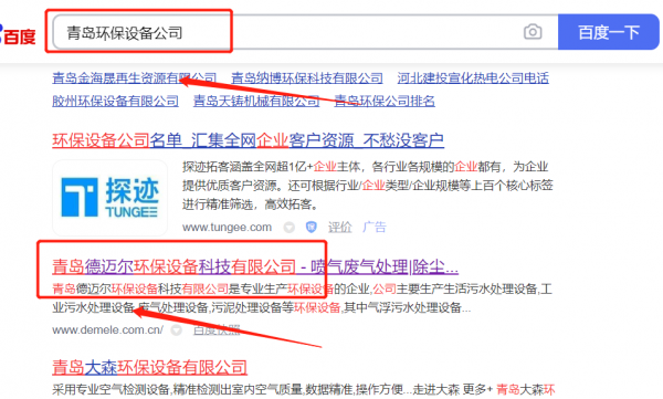 青島*邁爾環(huán)保設備科技有限公司百度排名到首頁無排名不收費