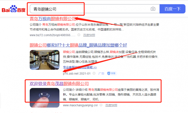 青島茂*眼鏡有限公司SEO排名效果展示