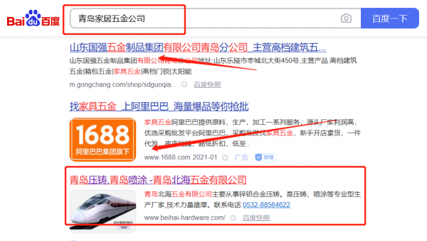 青島北*五金有限公司選用我司企業家居五金的網站優化產品,其SEO關鍵詞有家居五金。一對一定制服務,產品經理在線支持,無憂售后,適用于各個企業,提供一站式網絡營銷服務。百度搜索引擎優化,提升品牌關鍵詞的正面內容信息展現,體現良好的口碑宣傳。青島北*五金有限公司成立于1999年,是經青島市市場監督管理局審核的有資質的公司,其統一社會信用代碼:913702821**947709E。公司地址:山東省青島市即墨市環秀街道辦事處小韓村。