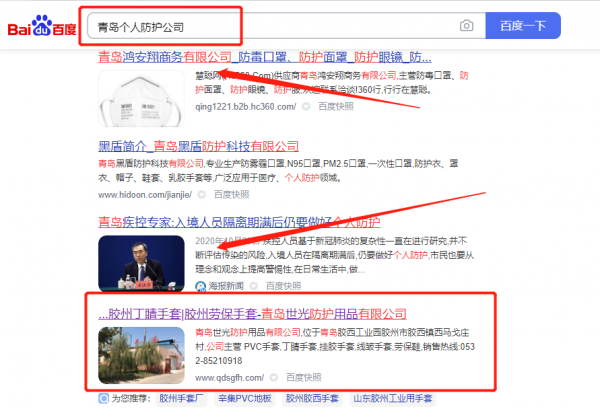 青島世*防護用品有限公司網站SEO優化最快上詞效果展示