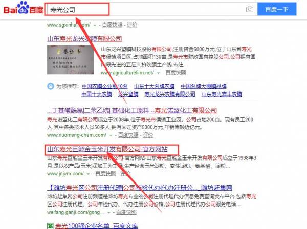 山東壽光巨能金玉米開發有限公司我司簽下關鍵詞搜索排名協議