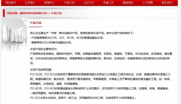 滕州中聯水泥有限公司選用我司企業化工行業的網站優化產品,其SEO關鍵詞有 中聯水泥,滕州中聯水泥有限公司。其特點是用很合適的展示方式、展示效果、站點框架,把客戶及其用戶很關心的問題突出表現;并以簡潔明朗的設計風格,清晰展現公司水平實力,確保一秒抓住目標用戶眼球,給用戶留下良好的第一印象。滕州中聯水泥有限公司成立于2007年,是經滕州市市場監督管理局審核的有資質的公司,其統一社會信用代碼:91370481661963760K 。公司地址:山東省滕州市羊莊鎮中頂山村。