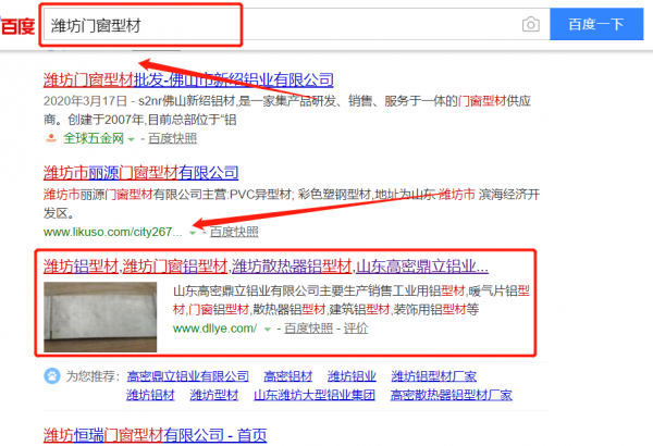 我們公司與山東高密鼎立鋁業有限公司合作中,對這個公司所經營的門窗型材這個行業提供了關鍵詞搜索排名,與該公司的合作,更多的客戶讓我們公司為其提供關鍵詞搜索排名,通過每一次合作,我們公司不斷完善自己,同時希望合作伙伴在經營的路上越來越好。