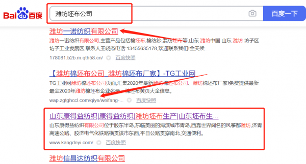 山東*祥(康得益)紡織有限公司百度關鍵詞排名保證在首頁效果