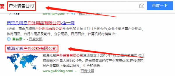 我們公司與威海光威戶外裝備有限公司合作中,對這個公司所經(jīng)營的戶外裝備這個行業(yè)提供了百度快照排名,與改公司的合作,更多的客戶讓我們公司為其提供百度快照排名,通過每一次合作,我們公司不斷完善自己,同時希望合作伙伴在經(jīng)營的路上越來越好。