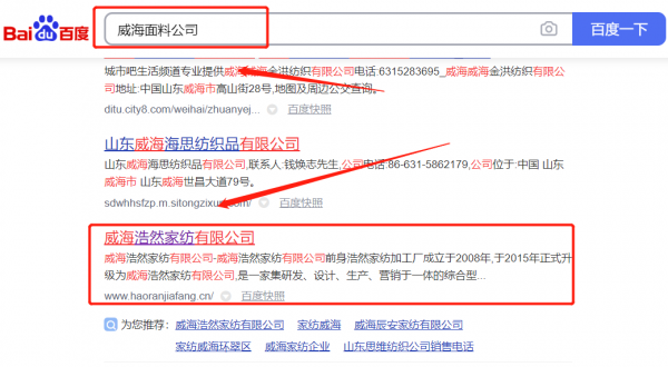威海*然家紡有限公司網絡推廣到首頁無排名不收費
