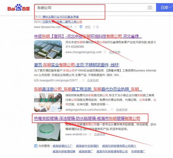 威海市東*玻璃有限公司網站優化最快上詞效果展示
