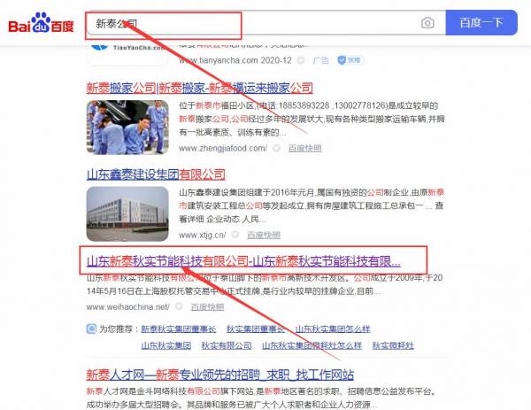 山東新泰*實節能科技有限公司網站優化排名效果展示