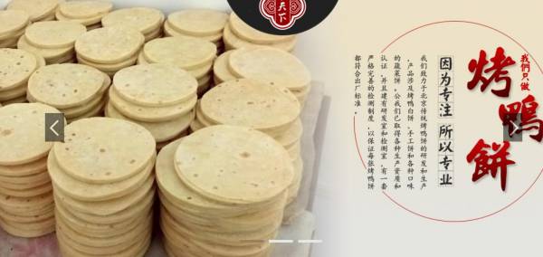 莘縣甲天*品有限公司坐落于素有"江北水城"美譽的山東聊城,公司成立于2017年,是一家正處于朝氣蓬勃發展的年輕企業。我公司致力于北京傳統烤鴨餅的研發和生產,產品涉及烤鴨白餅、手工餅和各種口味的蔬菜餅。公司已取得各種生產資質和認證,并且建有研發室和檢測室,有一套嚴格完善的檢測制度,以保證每張烤鴨餅都符合出廠標準。