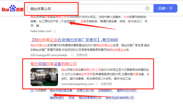 煙臺雙*皮革設備有限公司百度排名排名效果展示