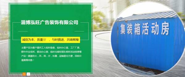 山東省專業的集裝箱活動房廠家:淄博泓*廣告裝飾有限公司,南靠濟青高速,西臨濱菜高速,交通便利,地理位置優越,人文景觀好。公司主要產品為客戶提供工人臨時宿舍、臨時辦公室、工廠廠房、野外作業場所、移動辦公房、臨時倉庫和軍隊哨所活動崗亭等產品!具備防火,風,雨,沙,抗震,運輸居住方便,回收價值高等優勢!公司產品不僅造型優美,經久內用,且環保指數已達到先進水平。 公司融合了設計理念和制造技術,采用工廠化的生產流程,擁有一大批技術過硬、經驗豐富的工程師及技術人員,引進先進的生產設備,生產制造技術一直保持行業好的水平。