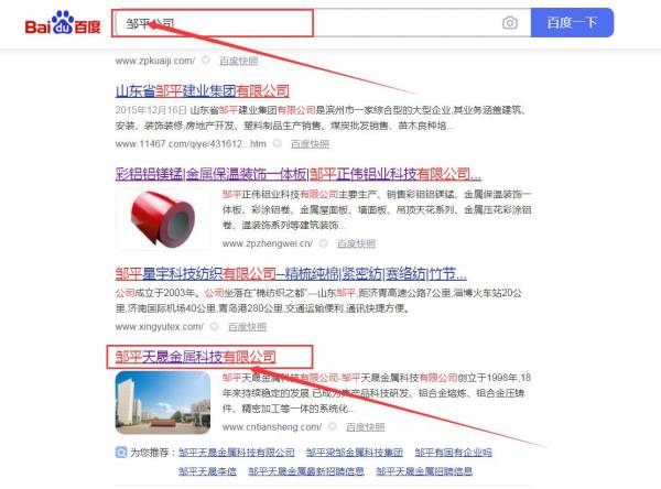 鄒平天*金屬科技有限公司百度排名最快上詞效果展示