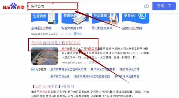 焦作市黃*華龍工程有限公司百度排名最快上詞效果展示