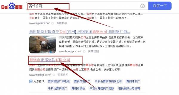 舞鋼市正*鋼鐵有限公司網站優化排名效果展示