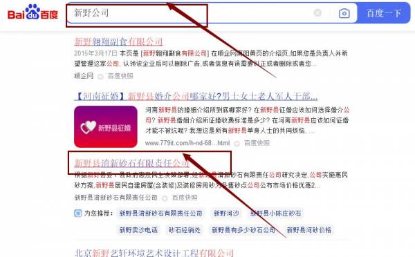 新野縣*新砂石有限責任公司百度排名最快上詞效果展示