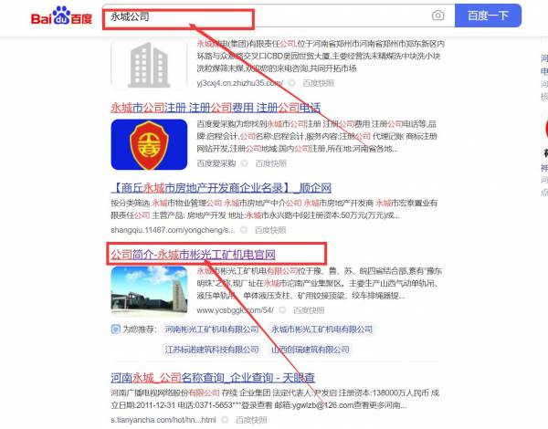 永城市*光工礦機電有限公司網站優化最快上詞效果展示