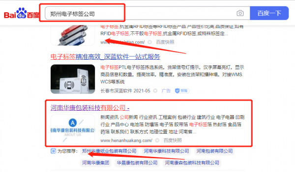 河南華*包裝科技有限公司選用我司企業電子標簽的網站優化產品,其SEO關鍵詞有電子標簽。主要針對百度、搜狗、360等搜索引擎進行快速排名優化服務,關鍵詞排名必要條件是在搜索結果前3頁,周期15天內可優化到搜索引擎首頁。河南華*包裝科技有限公司成立于2014年,是經鄭州市市場監督管理局審核的有資質的公司,其統一社會信用代碼:914101813**426760Y。公司地址:河南省鄭州市鞏義市產業集聚區。