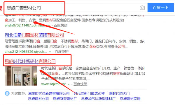 我們公司與恩施時代佳新建材有限公司合作中,對這個公司所經營的門窗型材這個行業提供了快速排名,與該公司的合作,更多的客戶讓我們公司為其提供快速排名,通過每一次合作,我們公司不斷完善自己,同時希望合作伙伴在經營的路上越來越好。