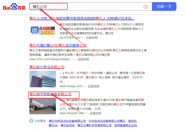 黃石輝**能設備有限公司同我公司簽署百度快照排名事宜