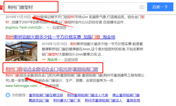 我們公司與荊州市富麗建筑工程有限公司合作中,對這個公司所經營的門窗型材這個行業提供了快速排名,與該公司的合作,更多的客戶讓我們公司為其提供快速排名,通過每一次合作,我們公司不斷完善自己,同時希望合作伙伴在經營的路上越來越好。