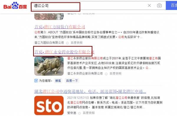 潛江永*藥業股份有限公司網站優化排名效果展示